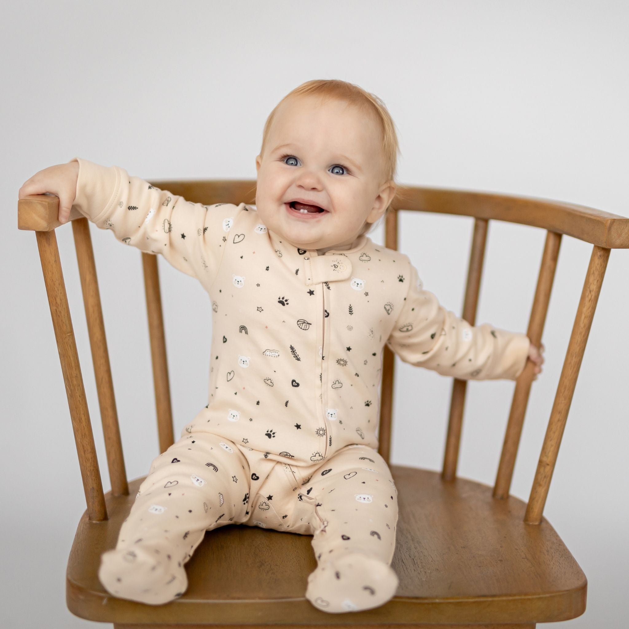 Snuggle your little one in our oh-so-soft, certified organic cotton footed sleepers! The 2-way zipper makes diaper changes a breeze while keeping baby’s arms and tummy cozy, and the built-in footies are perfect for keeping those tiny toes warm.