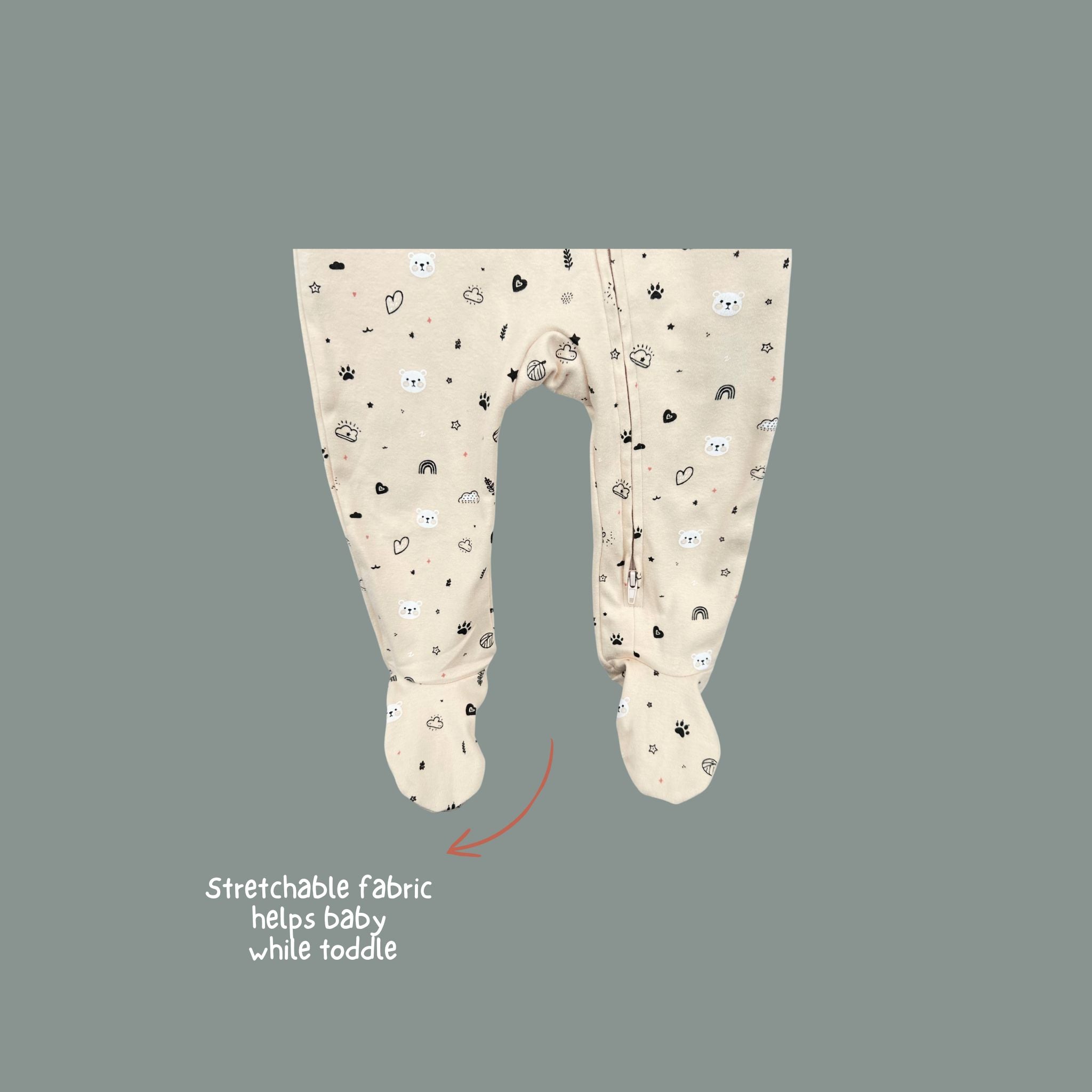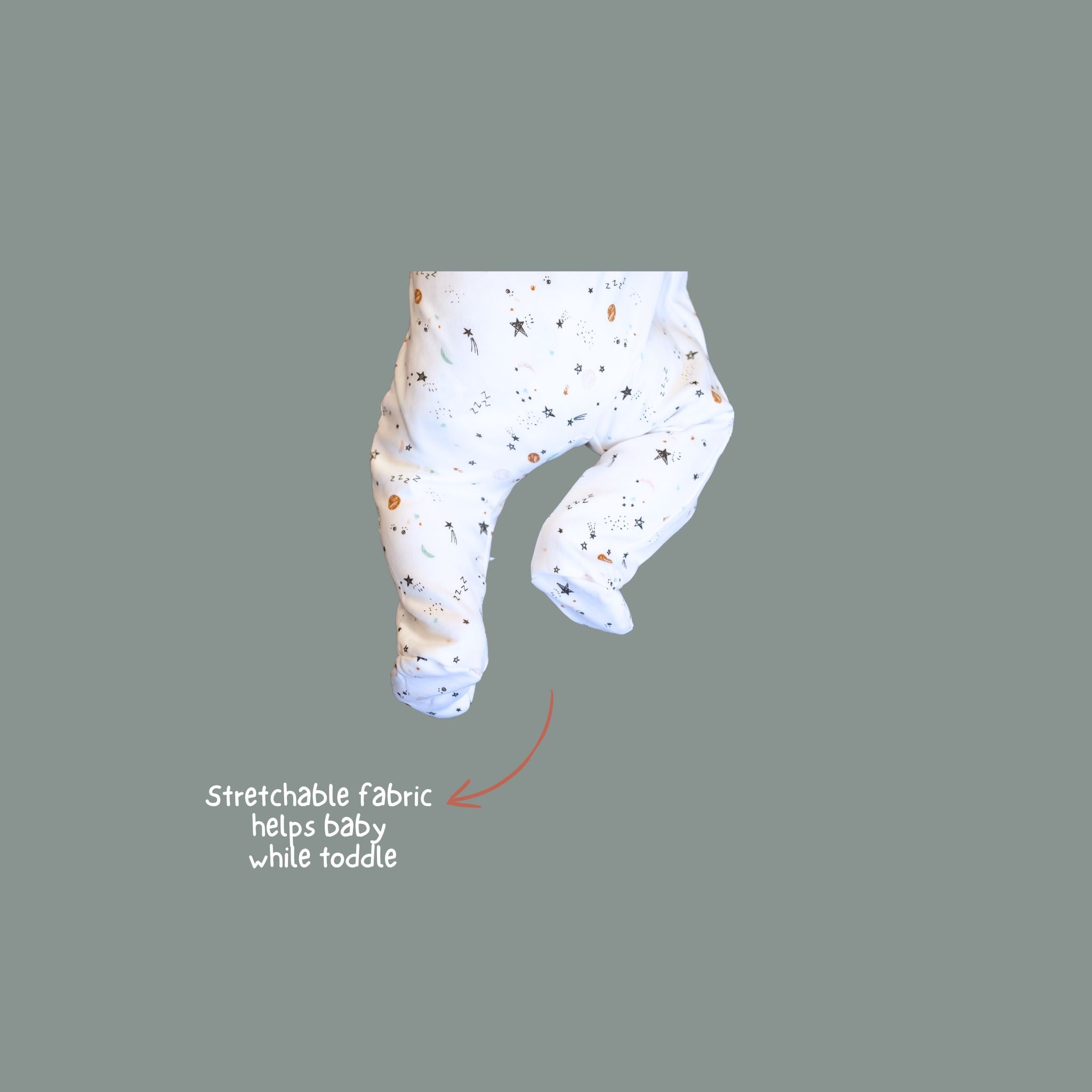 - Snuggly built-In footies that keep the tiny toes warm and toasty, without the fuss of grippers.