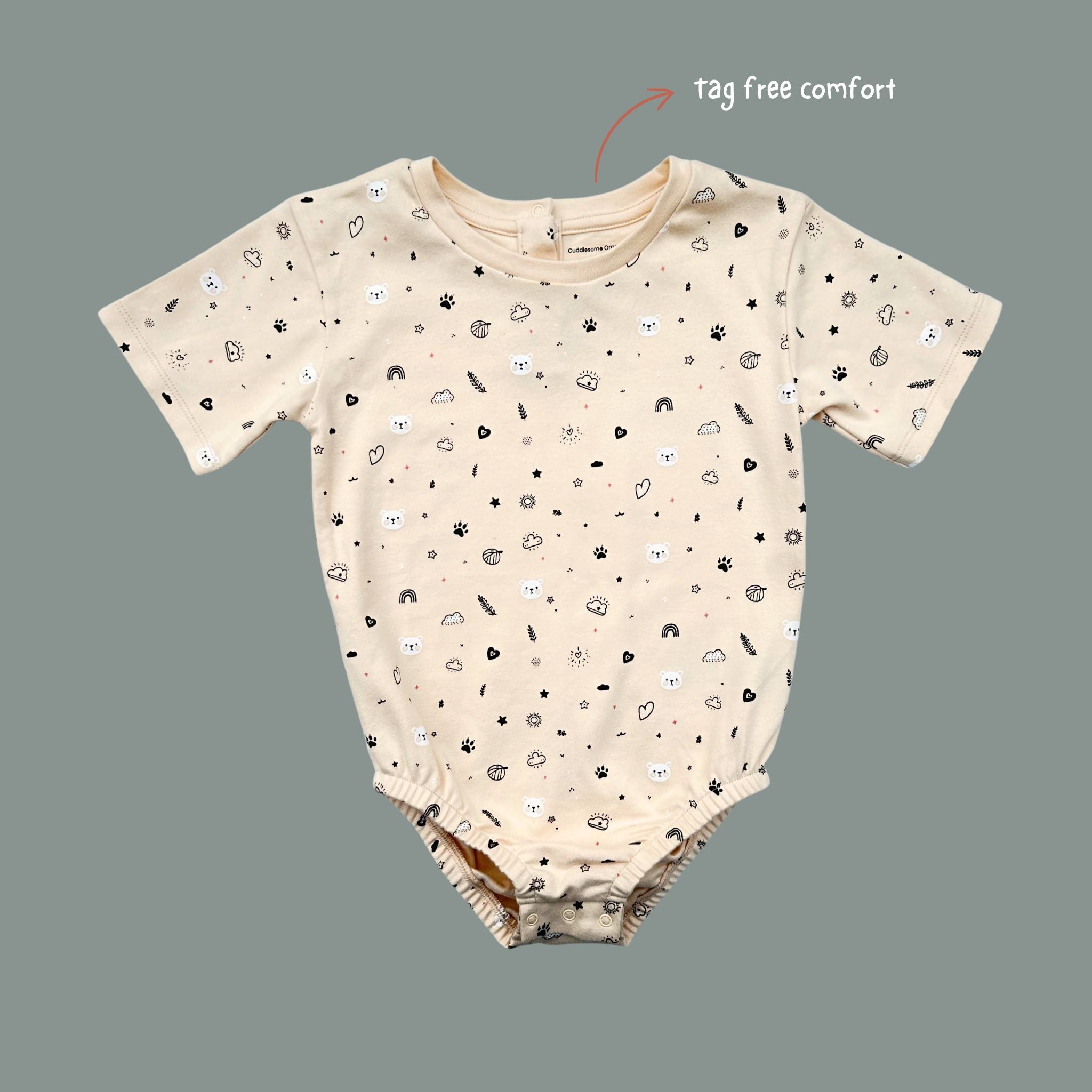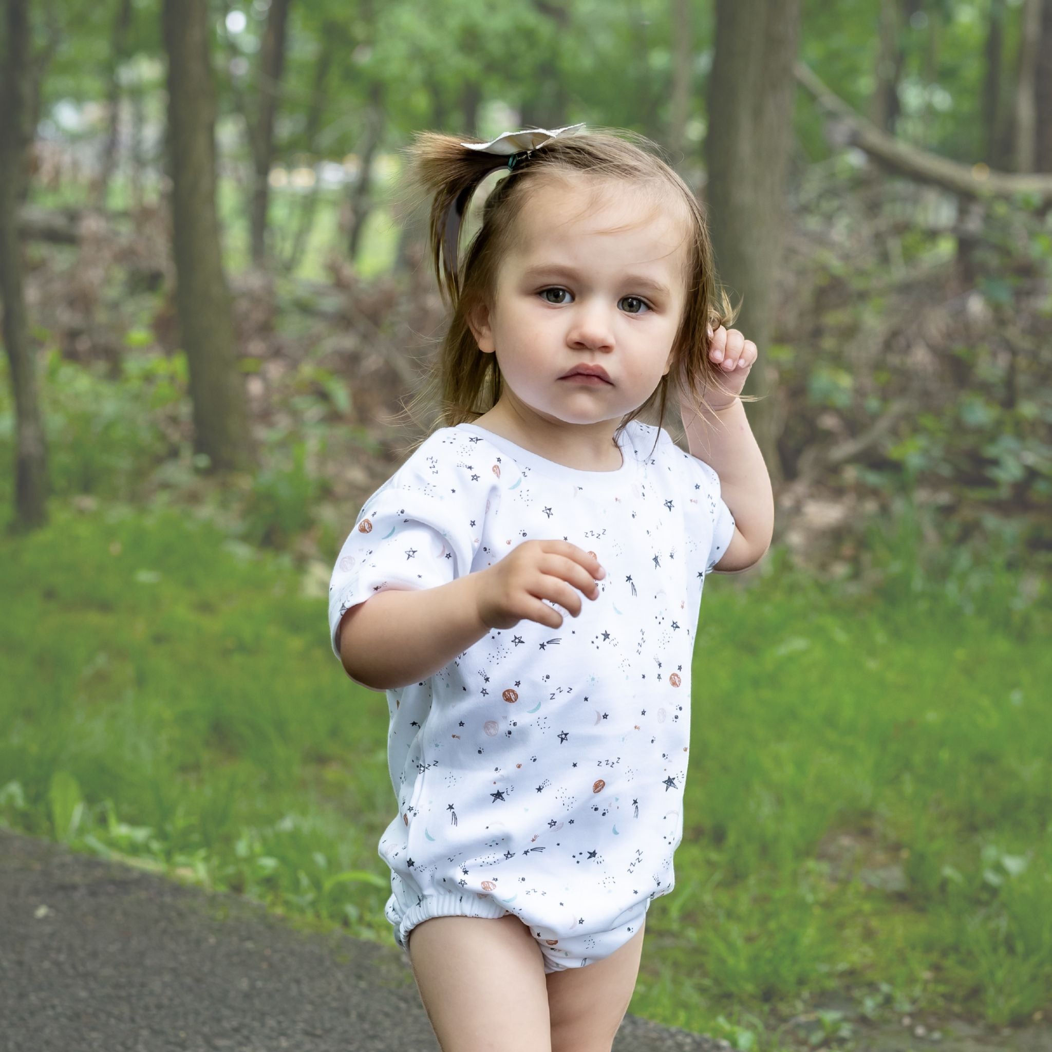 This bubble romper combines playful design with practical features, making it a perfect choice for any baby.We love the charming bubble silhouette that gives babies room to move and explore while looking absolutely adorable.