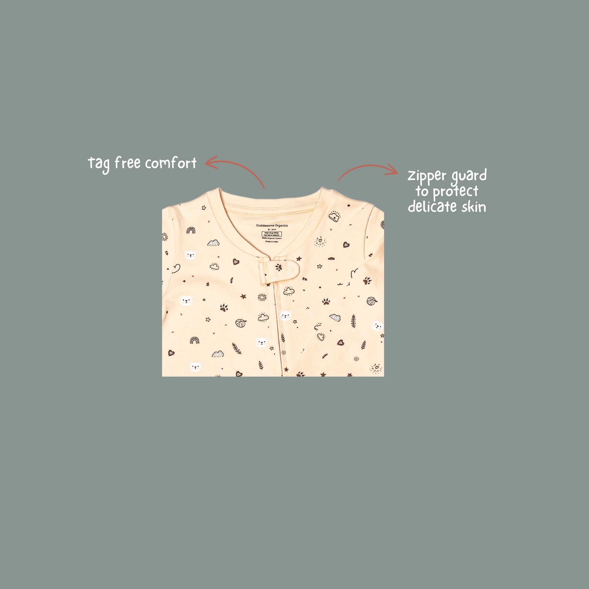- 2-way zipper makes diaper changes quick and easy, without waking your little one.